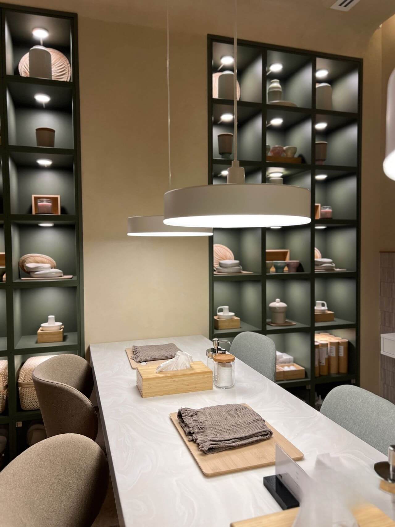 Такое покрытие особенно выигрышно смотрится в коммерческих интерьерах — спа-салонах, бутиках, лобби отелей и офисах премиум-класса. Благодаря матовому блеску и естественной текстуре оно не бликует под светом, а мягко рассеивает его, создавая комфортную визуальную среду.